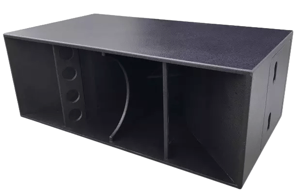Volledig hoorngeladen subwoofer, bestaande uit twee 18” basswoofers. De 2000 Watt rms verspreidt zich over een frequentiebereik van 45 Hz tot 280 Hz en wordt aangestuurd door een dsp-compatibel ingebouwde versterker. Voor verdragend merkbare bass is dit zeker geen overbodige luxe in combinatie met de R2 luidspreker.