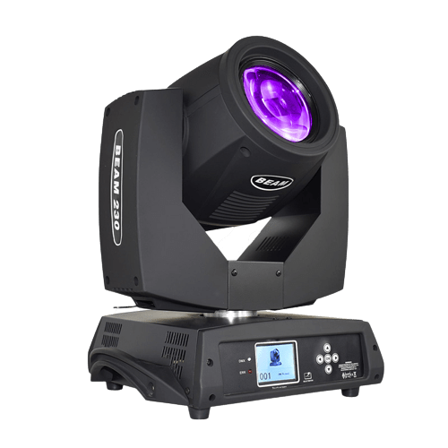 Intelligente lichtarmatuur met een felle 7r Osram lamp van 230 Watt. Deze armatuur biedt naast een zowel 3-pins dmx-verbinding ook een automatisch programma met master/slave functie, alsook een geluidsgestuurde optie. De 13 kleuren + wit in combinatie met 17 gobo’s, frost filter, roterende prisma en de focus zorgen voor een variatie aan mogelijkheden die in elke lichtshow passen. Zowel beam, spot als wash kunnen effectief weergegeven worden.